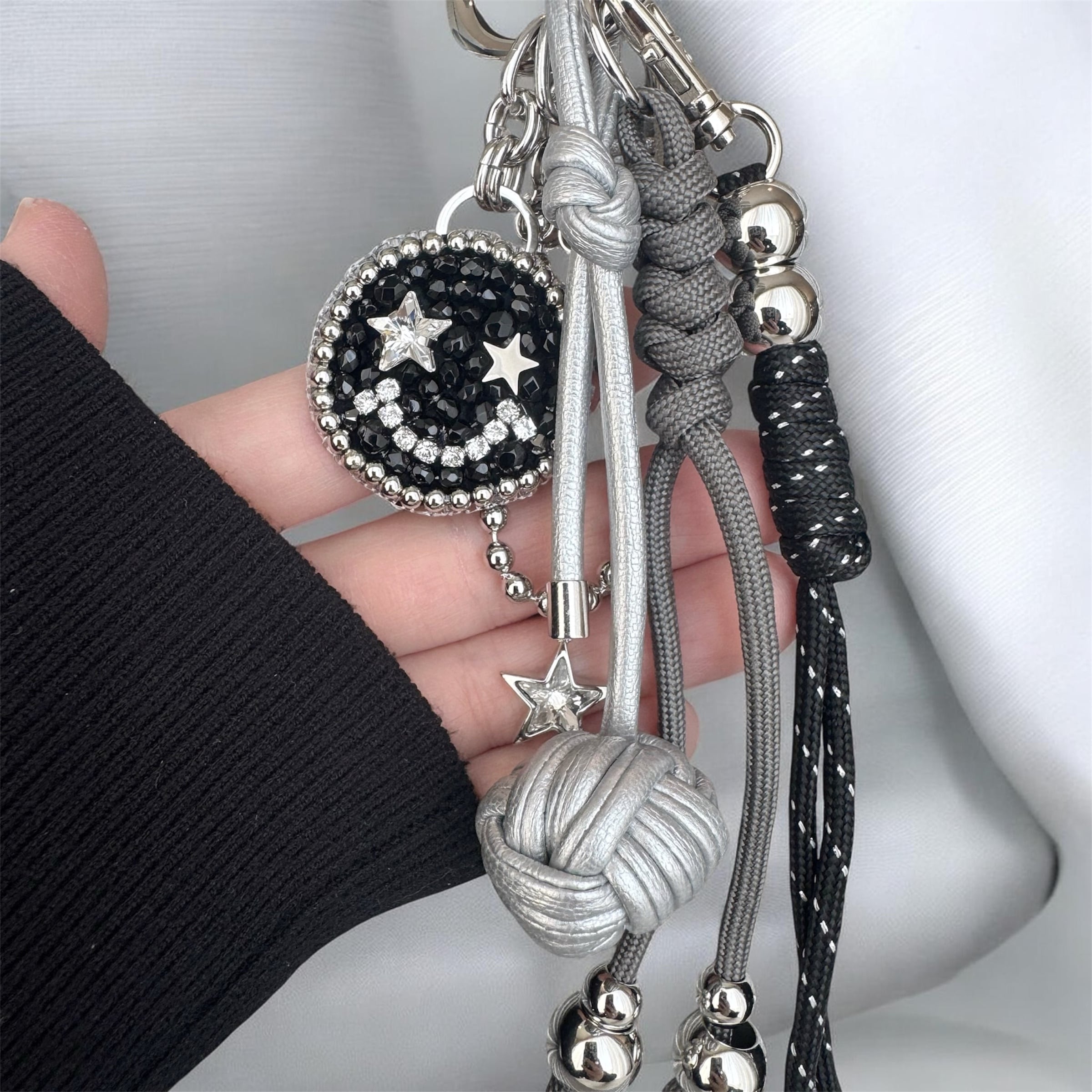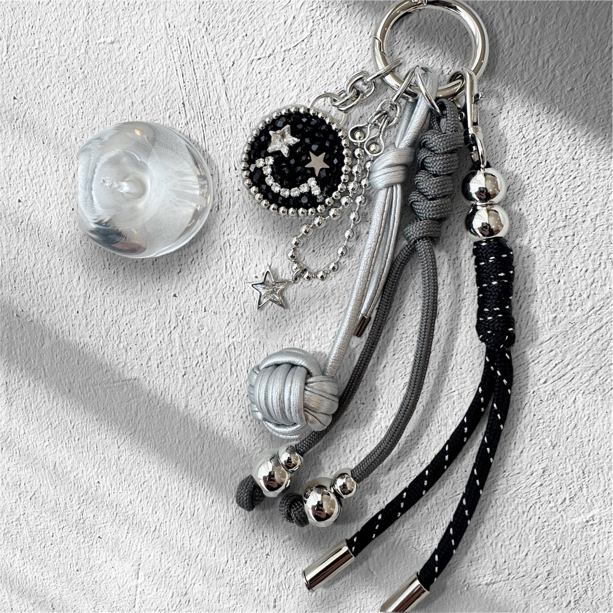 そして、全てのcharmに、ジャラジャラ感があるけど、大人なイメージにする為に、パラコードチャームと共に